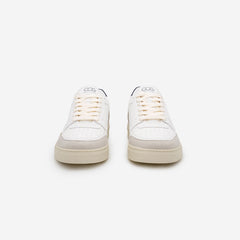 • Vegan retro sneaker in white, beige & navy blue
