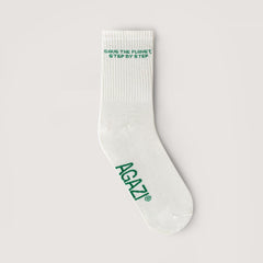Step up your style and sustainability with these Bamboo Long Socks, perfect for pairing with sneakers, loafers, or any casual footwear. Featuring a bold green print that says "SAVE THE PLANET. STEP BY STEP," these socks are a statement of eco-conscious living while offering unmatched comfort.
