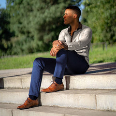 The Watson in Marron Glacé embodies modern elegance through a slim silhouette and a clean, minimalist design. Precision topstitching adds a subtle yet distinctive finishing touch.